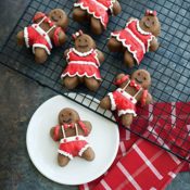Gingerbread girls and boys are sure to delight the kids and the kids at heart. Baked goods rise evenly, cook uniformly and are finely detailed. The boys have bowtie and trousers, the girls have bows and frilly skirts. Pan is made of heavy cast aluminum with heat-reflective exterior and nonstick surface. Dimensions: 12-1/4-inch x 9-3/4-inch x 1-3/4-inch high.